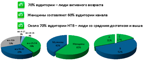 Телекомпания НТВ имеет статус федерального канала, единственный из частных российский телеканалов. Свыше 120 млн. человек в РФ являются аудиторией телеканала НТВ.